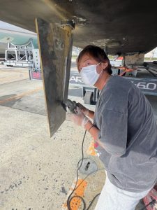 エンジンのメンテナンスや船底の汚れを落としたりプロペラを磨いたり大忙しです![]()