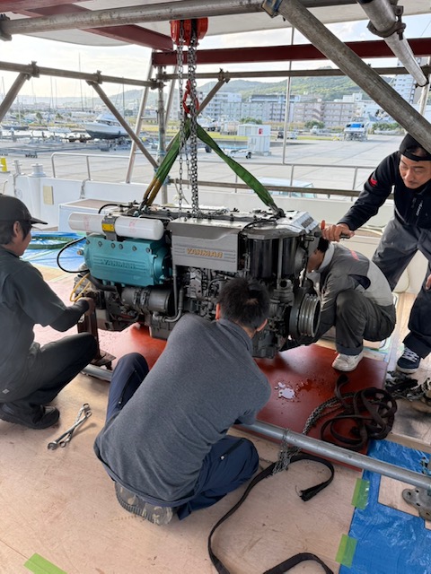 夏にシュノーケルツアーで活躍したLEQUIO号の心臓部分![]()