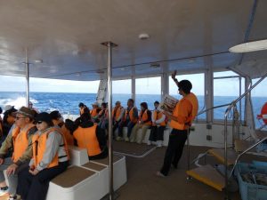 パラセーリングやホエールウォッチの船は構造的には揺れに強いですが、今日みたいな日は強風・高波ではどうしても揺れるので酔い止め薬オススメしてます。